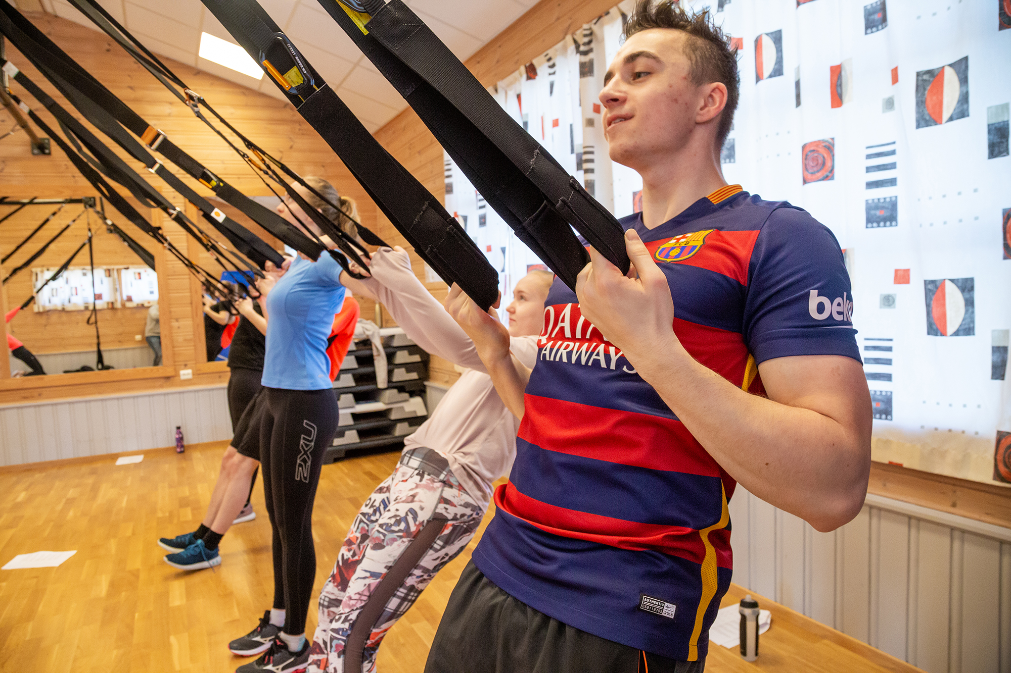 - Trene: I et godt treningsfellesskap skal du komme i bedre form. Skolen har et godt utrustet styrkerom, stor ny flerbrukshall og svømmebaseng. Styrke og kondisjon står i fokus.