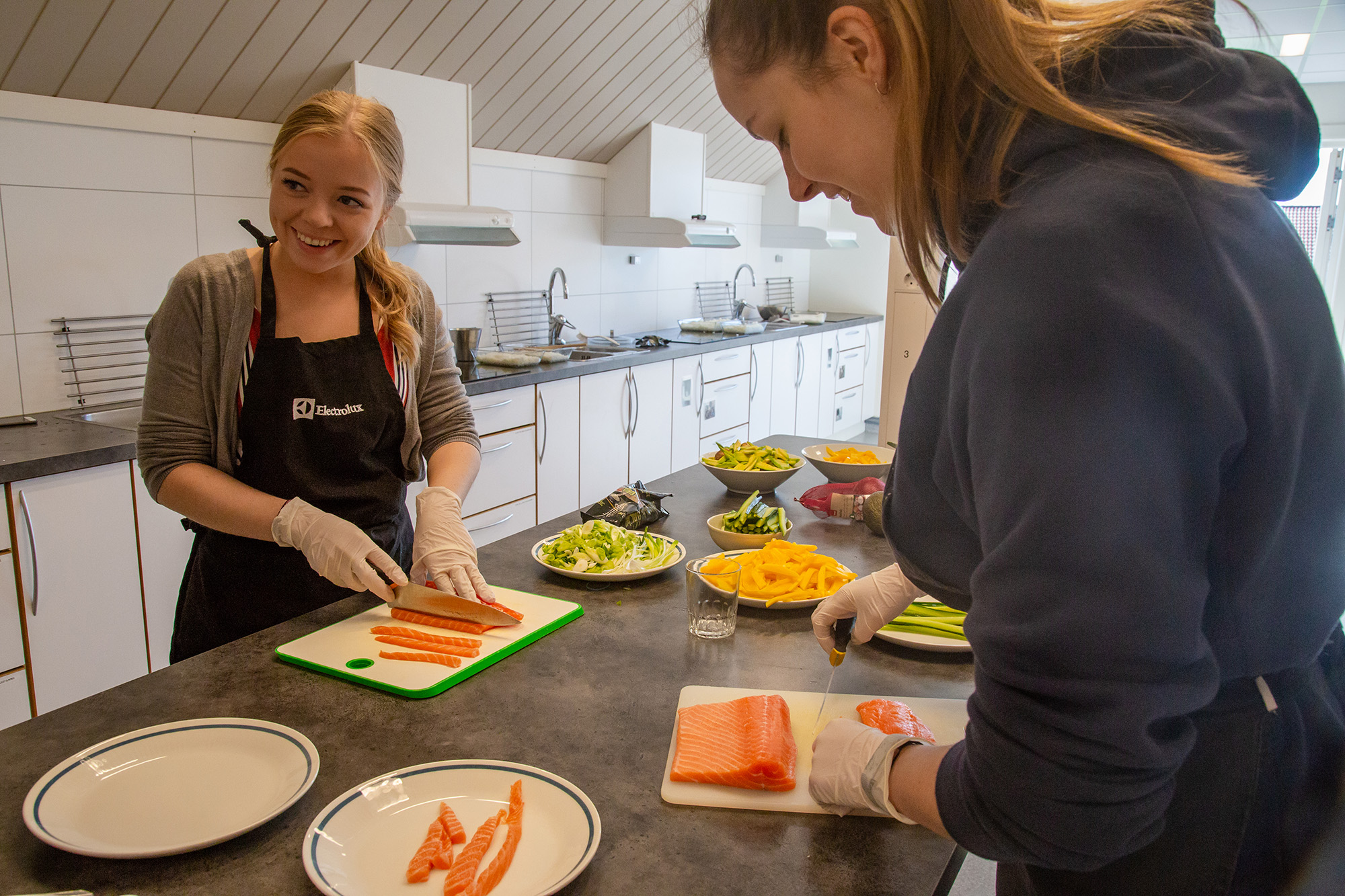 - Mat: Vi har et veldig flott skolekjøkken som innbyr til kokkelering og matbegeistring! Vi har fokus på de sunne matrettene, samtidig som vi også unner oss deilige desserter. Vi blir kjent med mat fra mange ulike kulturer - og mat får selvfølgelig et fokus når vi er ute å reiser, akkurat som trening også får et fokus.